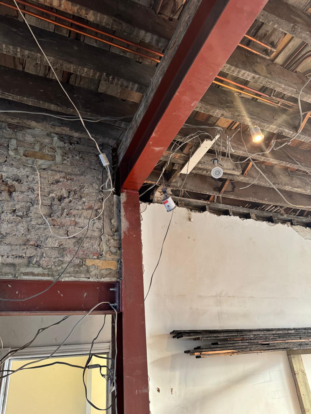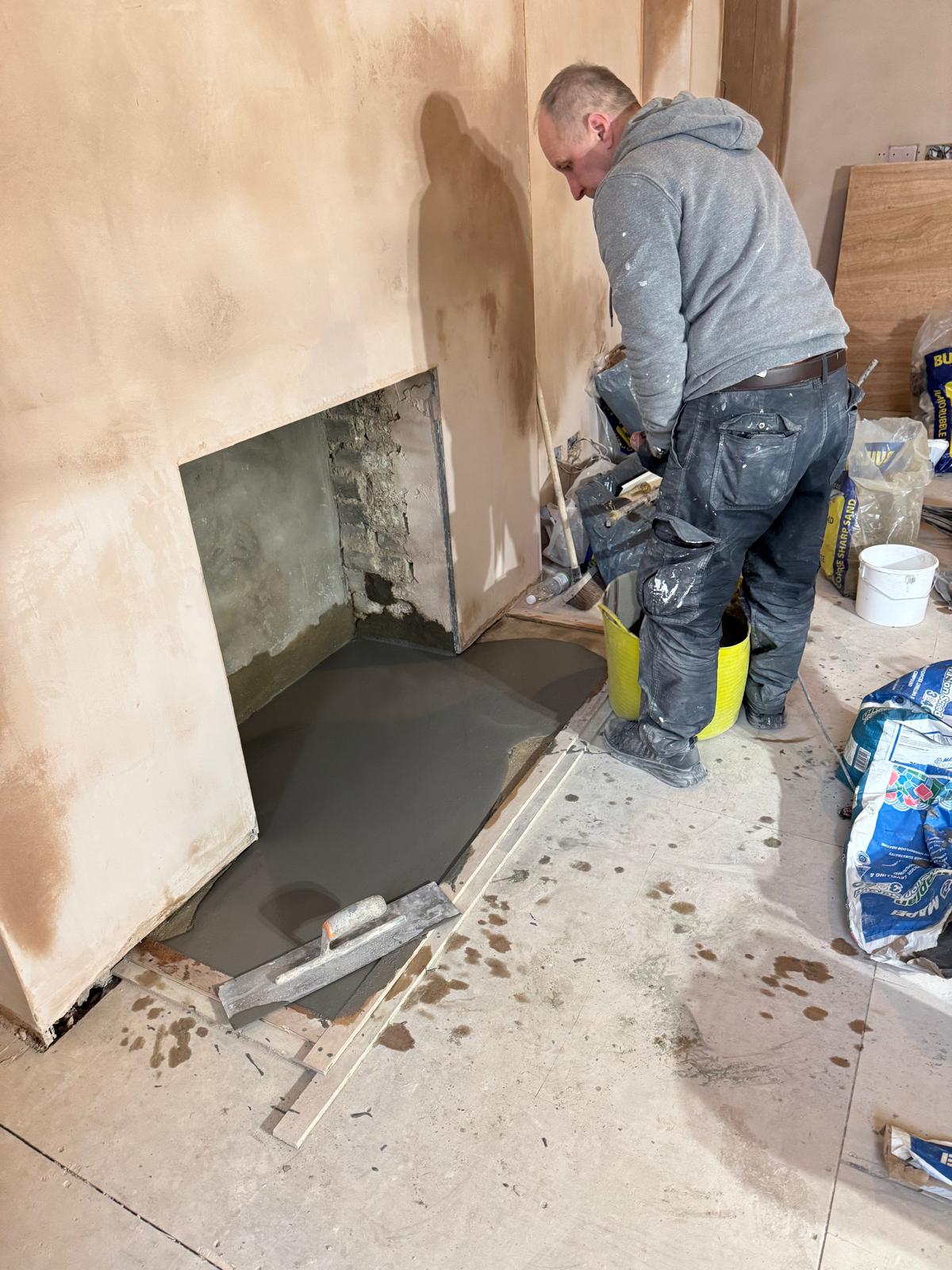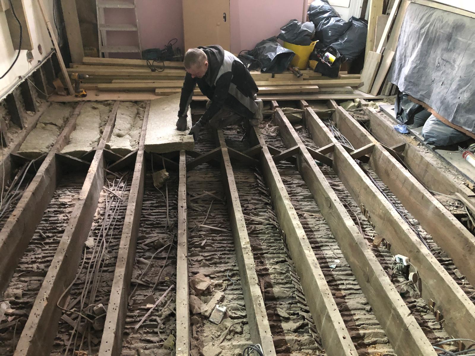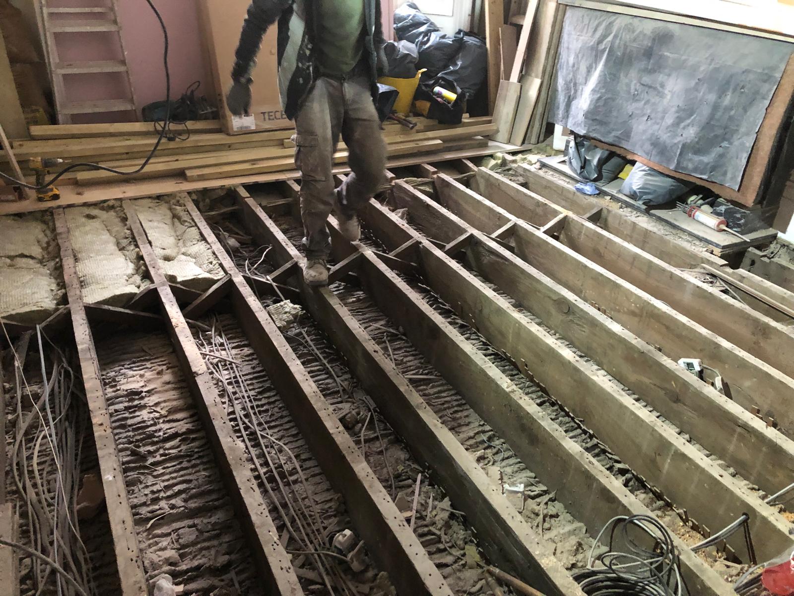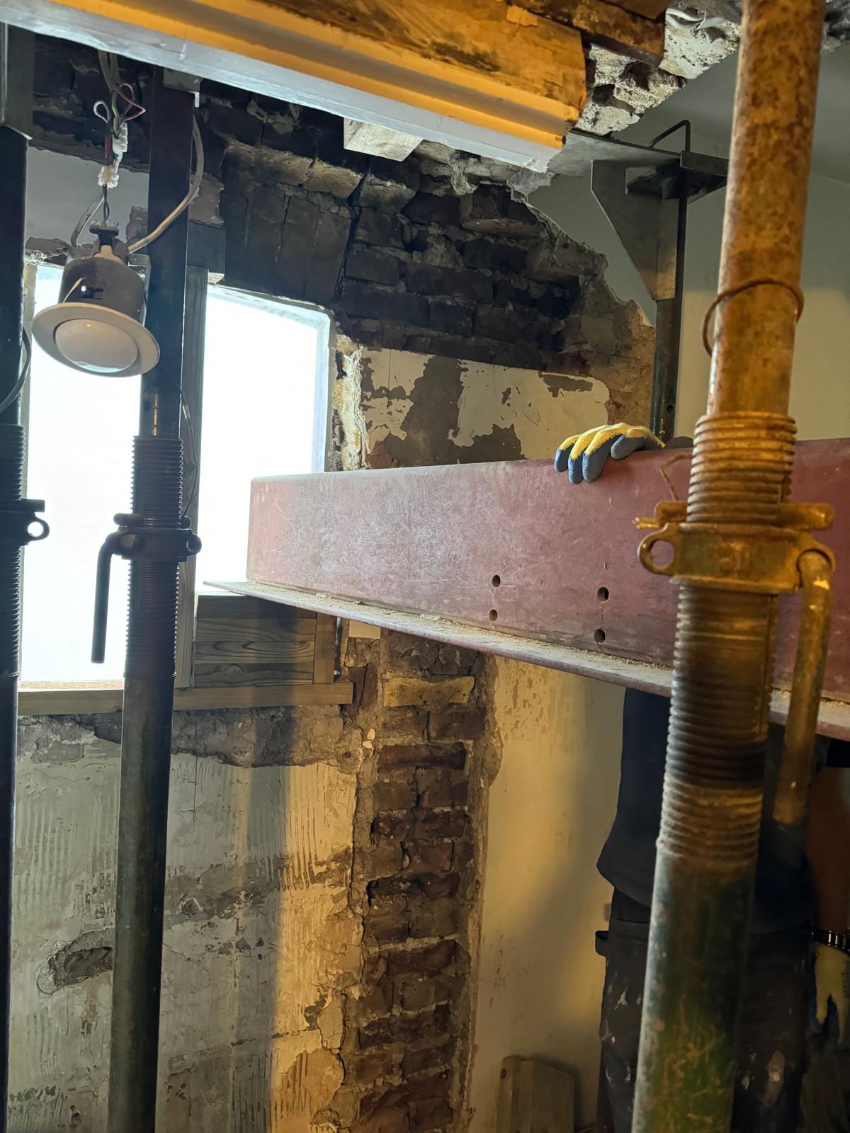 We started by completely stripping out the existing interior — removing internal walls, ceilings, and the old chimney structure. Because the layout was tight and the ceilings were low, the job required precision and experience. New steel beams were installed to support the modified structure, opening up the space and allowing for better light flow throughout the flat.