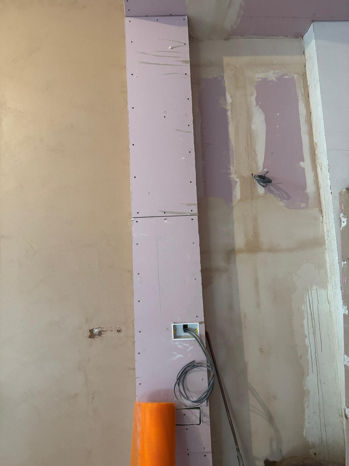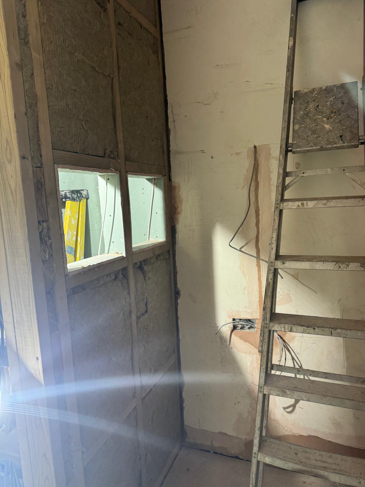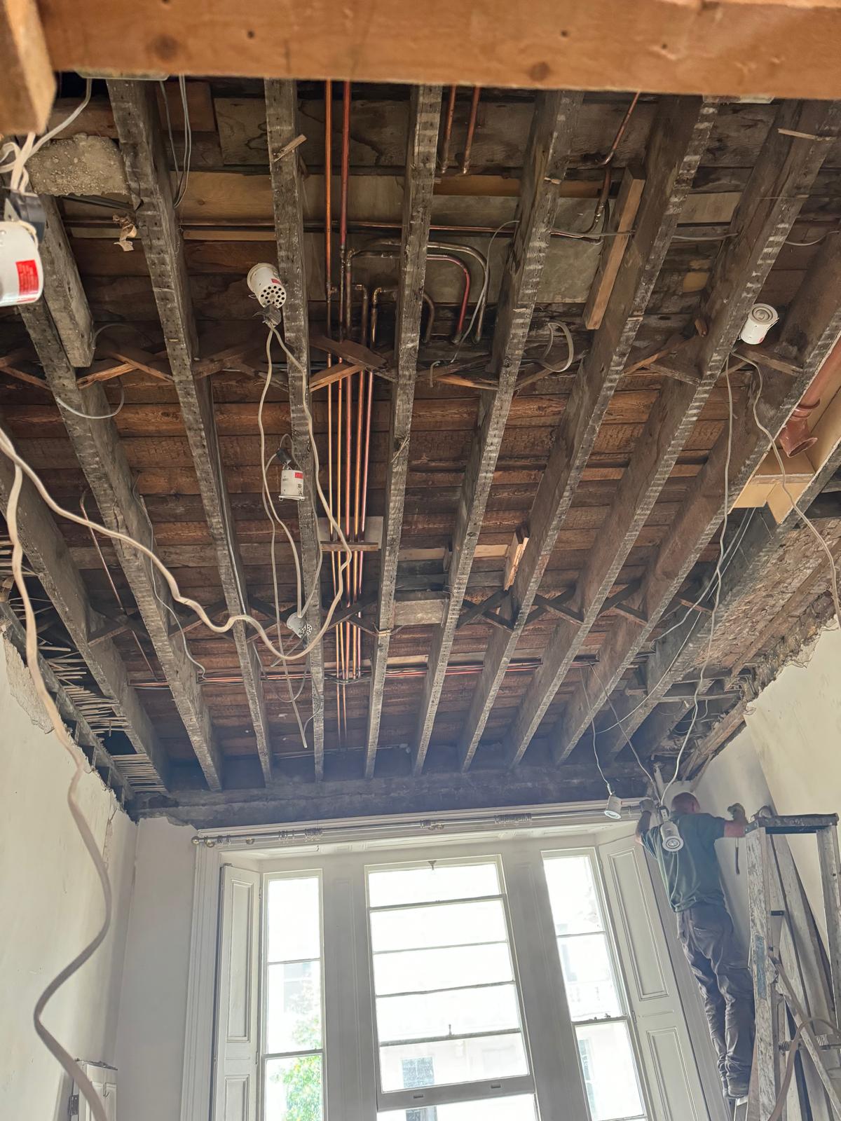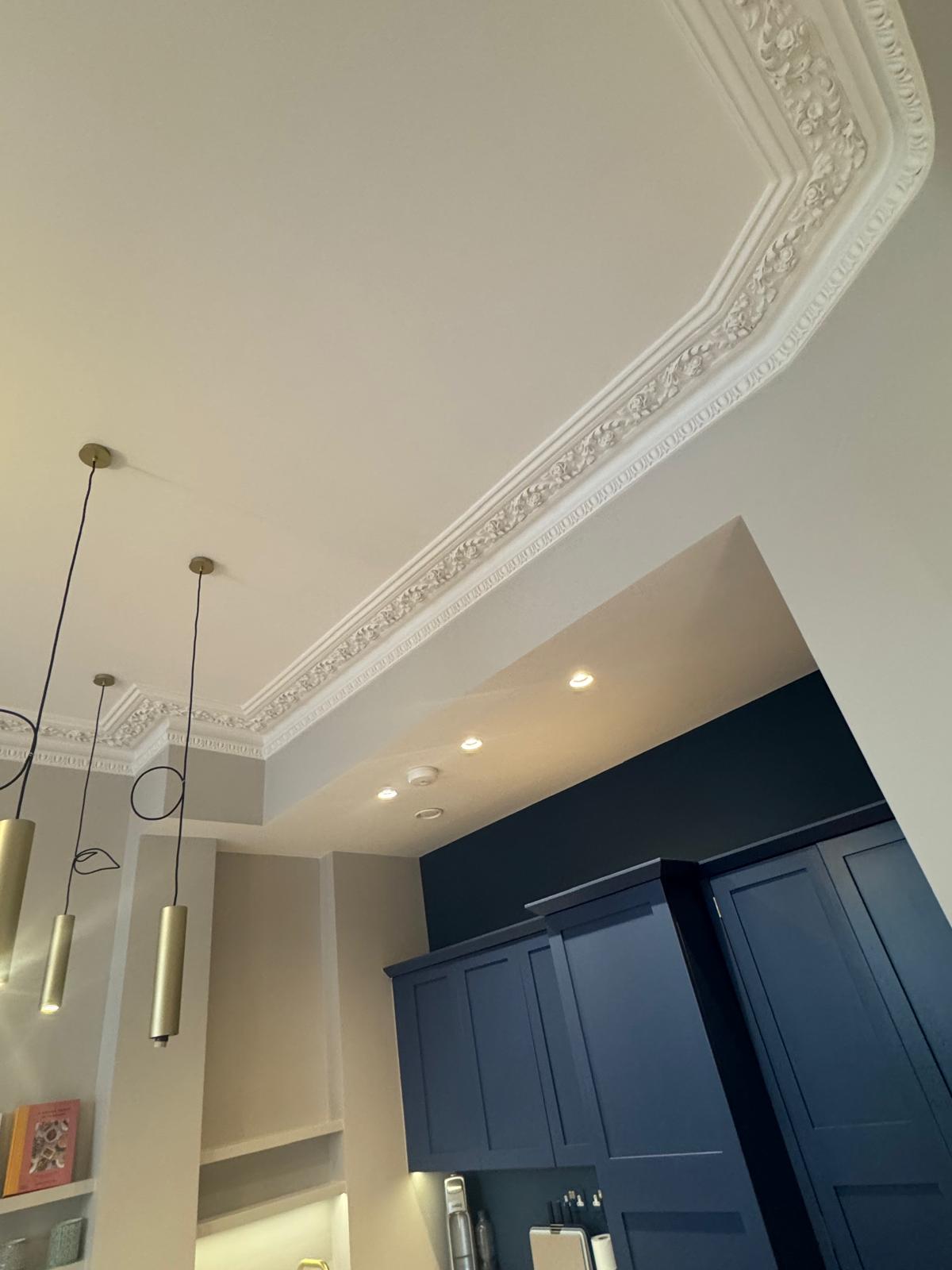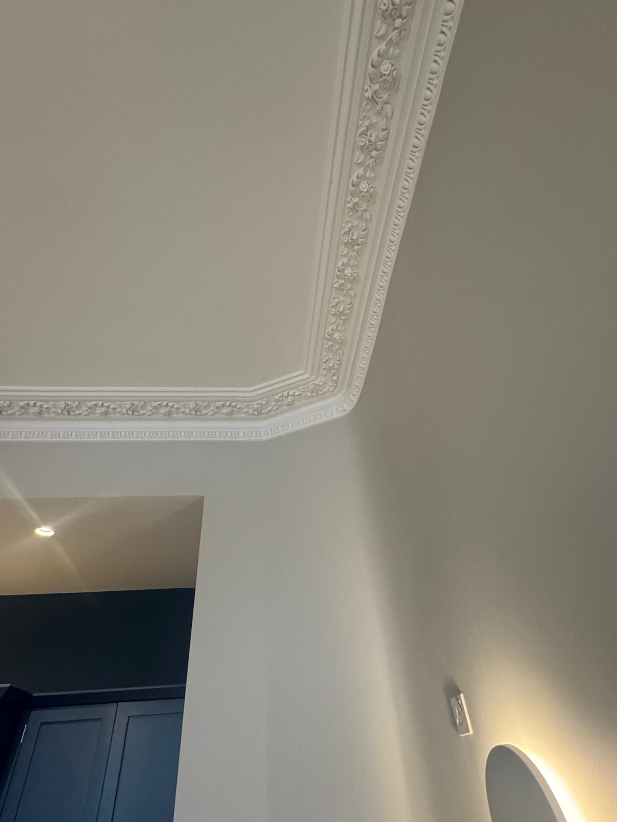All ceilings were rebuilt with new timber framing and fitted with acoustic insulation to reduce noise between floors. We then installed fire-rated plasterboards for safety and durability. Old cracked walls were reinforced with plaster mesh before being re-plastered to achieve a perfectly smooth finish.