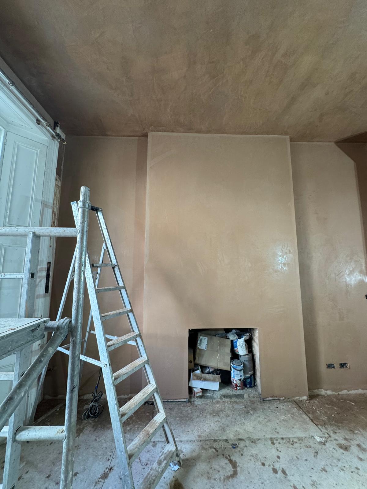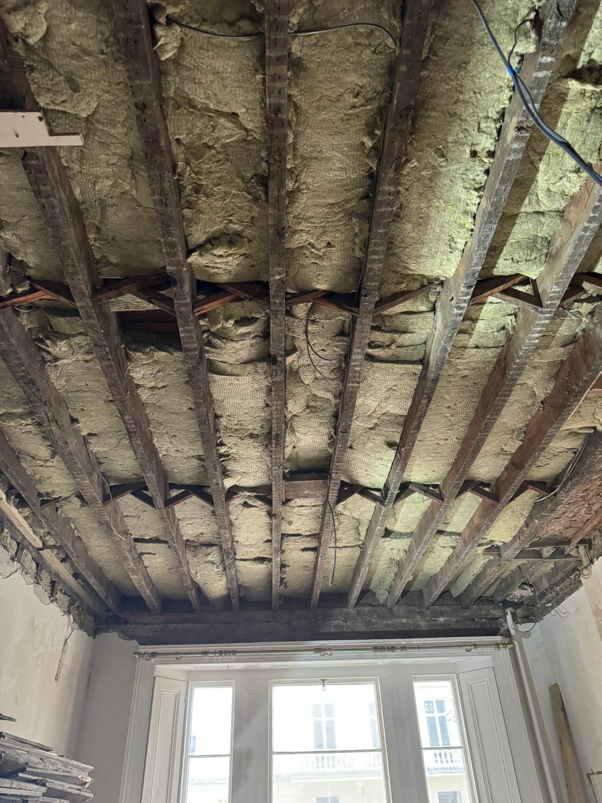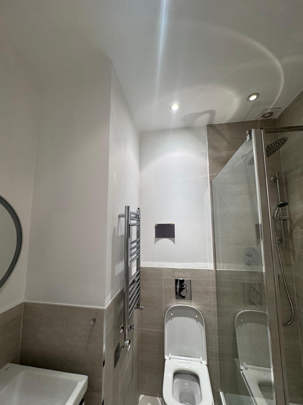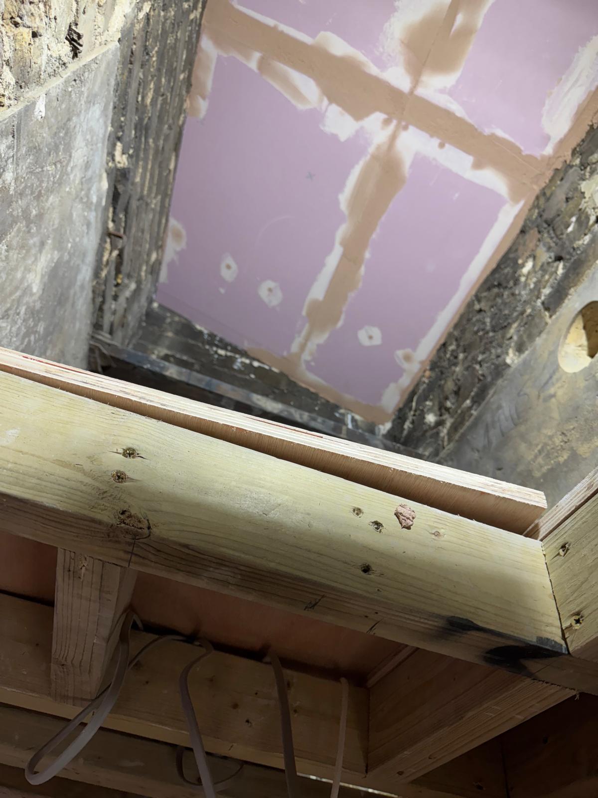 All ceilings were rebuilt with new timber framing and fitted with acoustic insulation to reduce noise between floors. We then installed fire-rated plasterboards for safety and durability. Old cracked walls were reinforced with plaster mesh before being re-plastered to achieve a perfectly smooth finish.