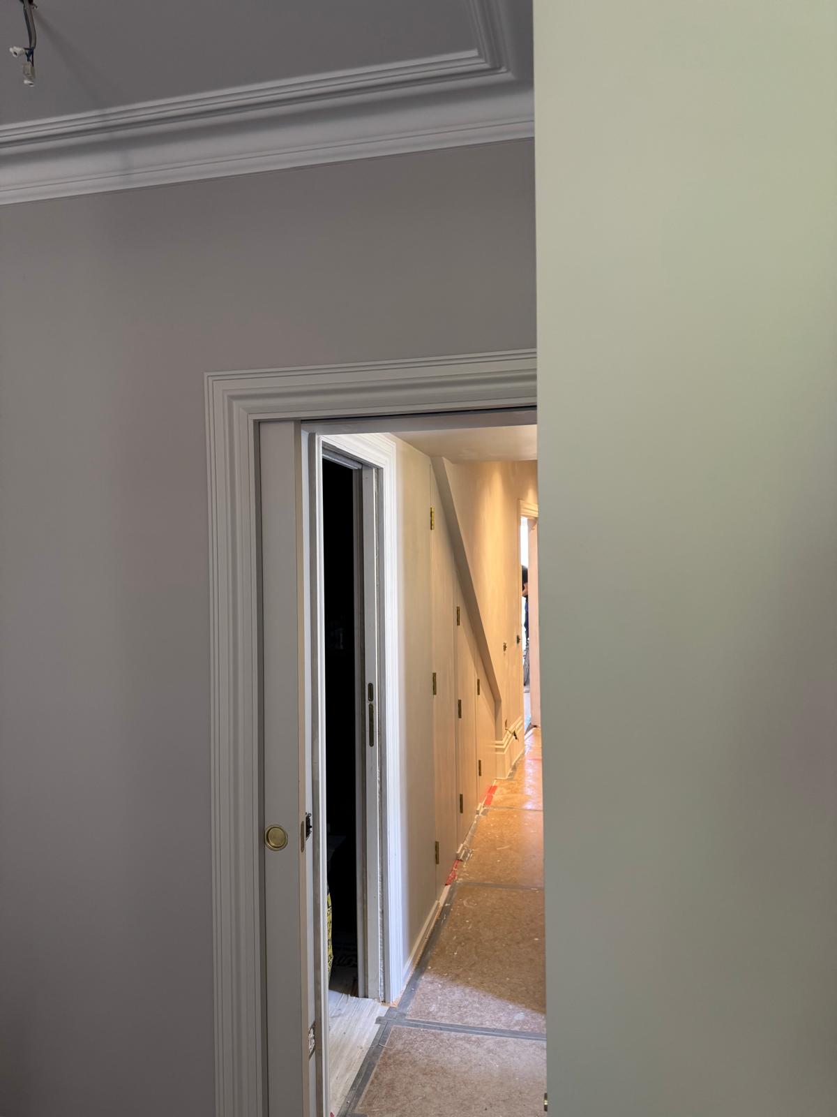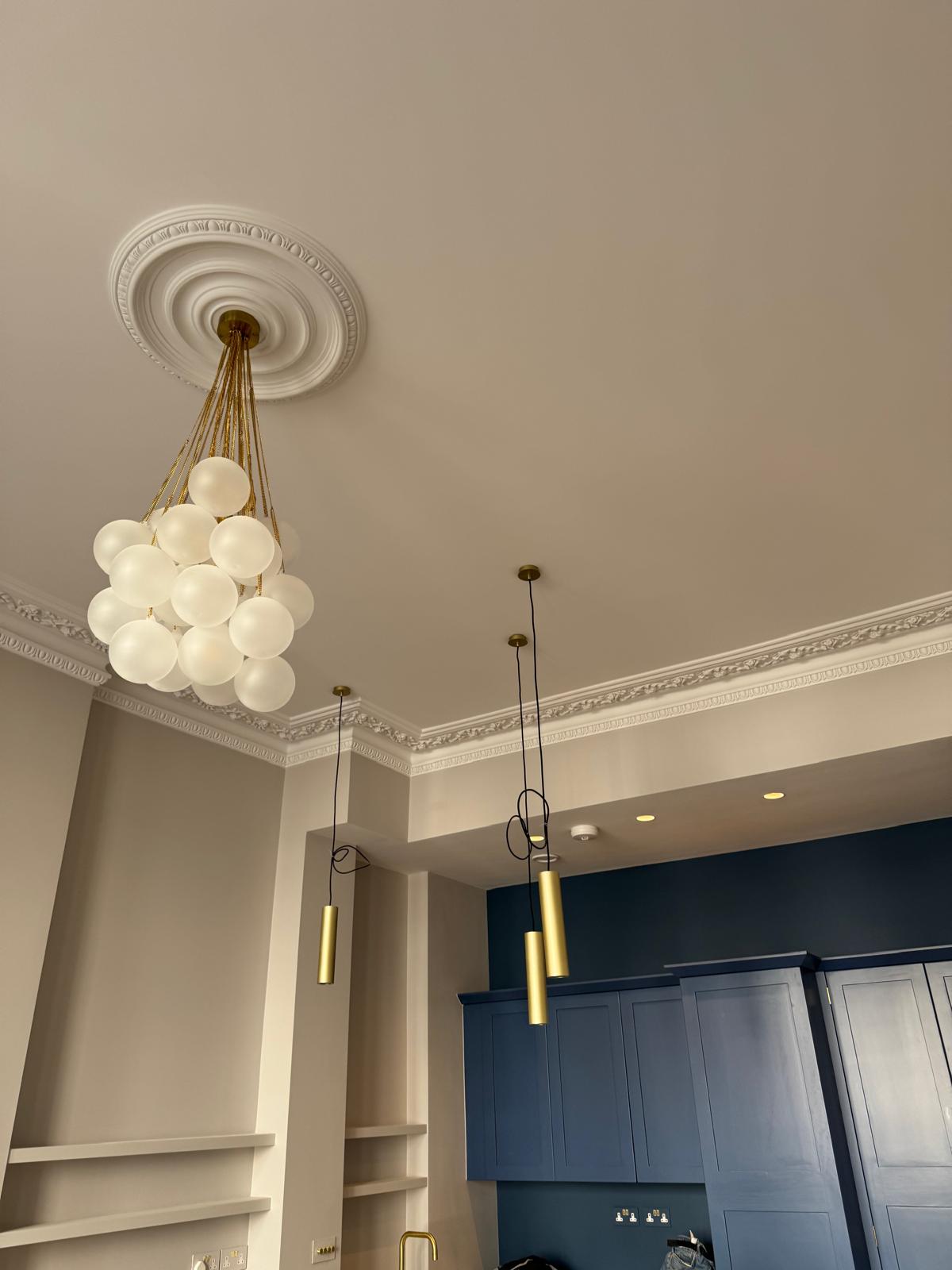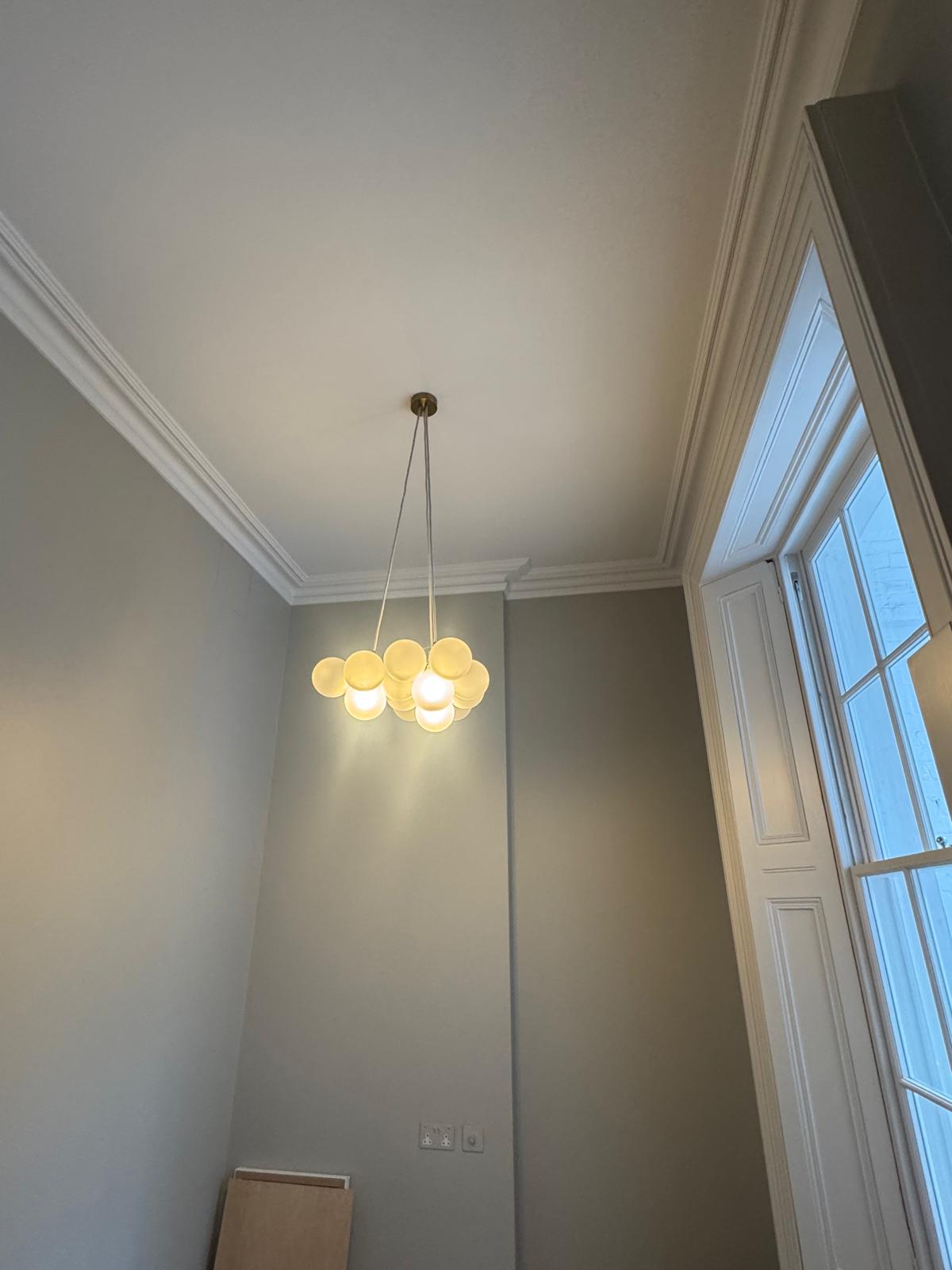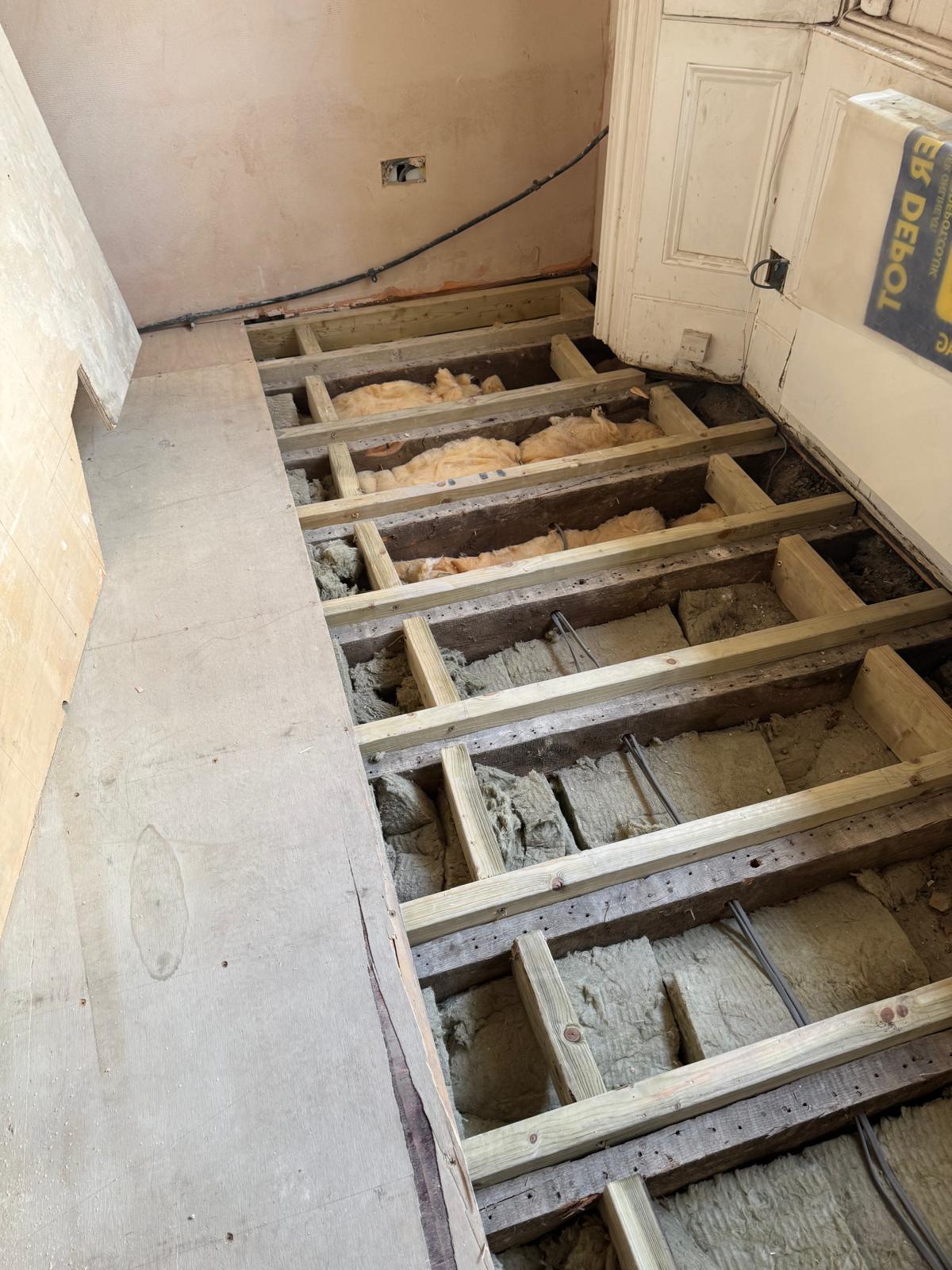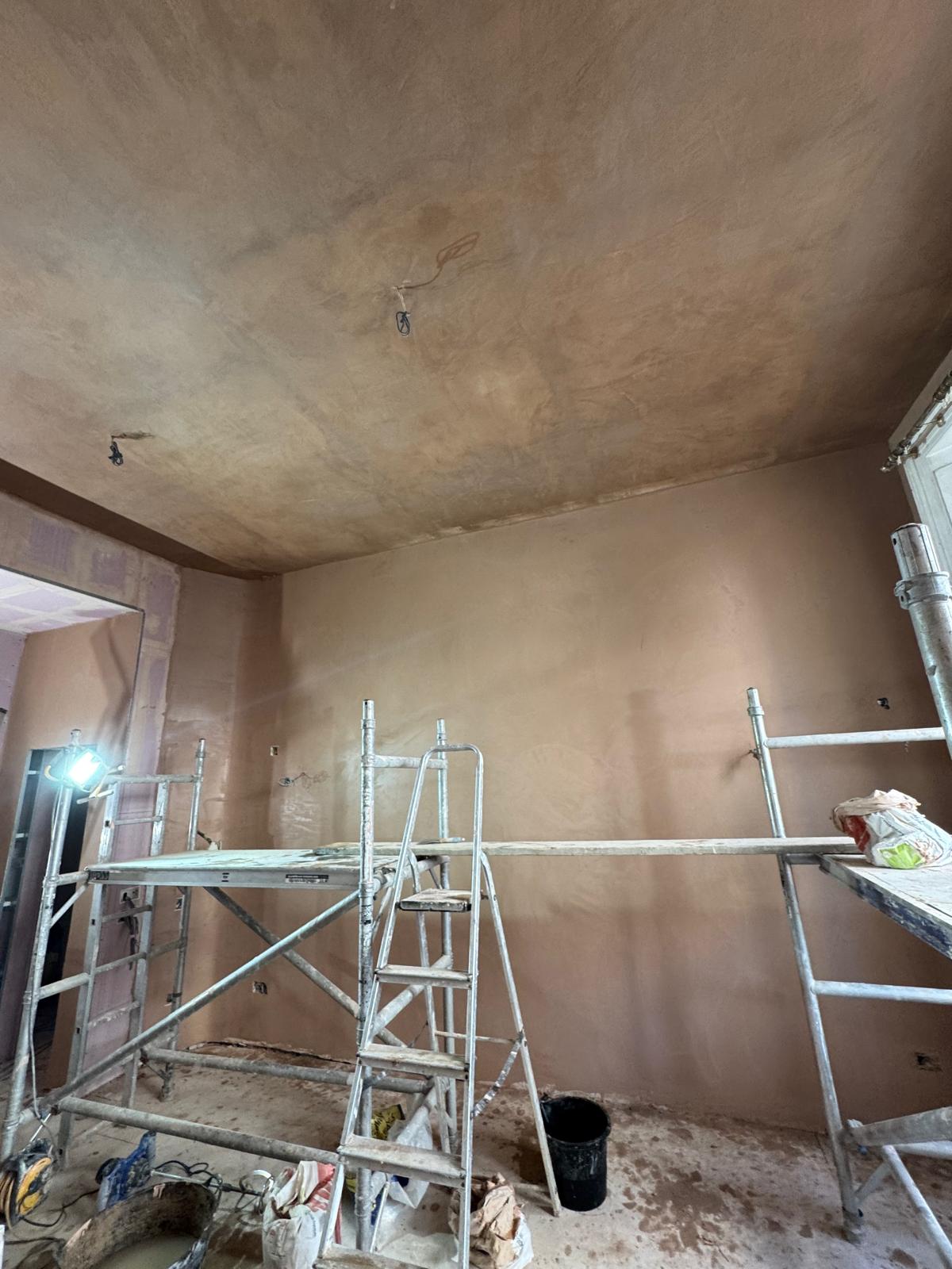 All ceilings were rebuilt with new timber framing and fitted with acoustic insulation to reduce noise between floors. We then installed fire-rated plasterboards for safety and durability. Old cracked walls were reinforced with plaster mesh before being re-plastered to achieve a perfectly smooth finish.