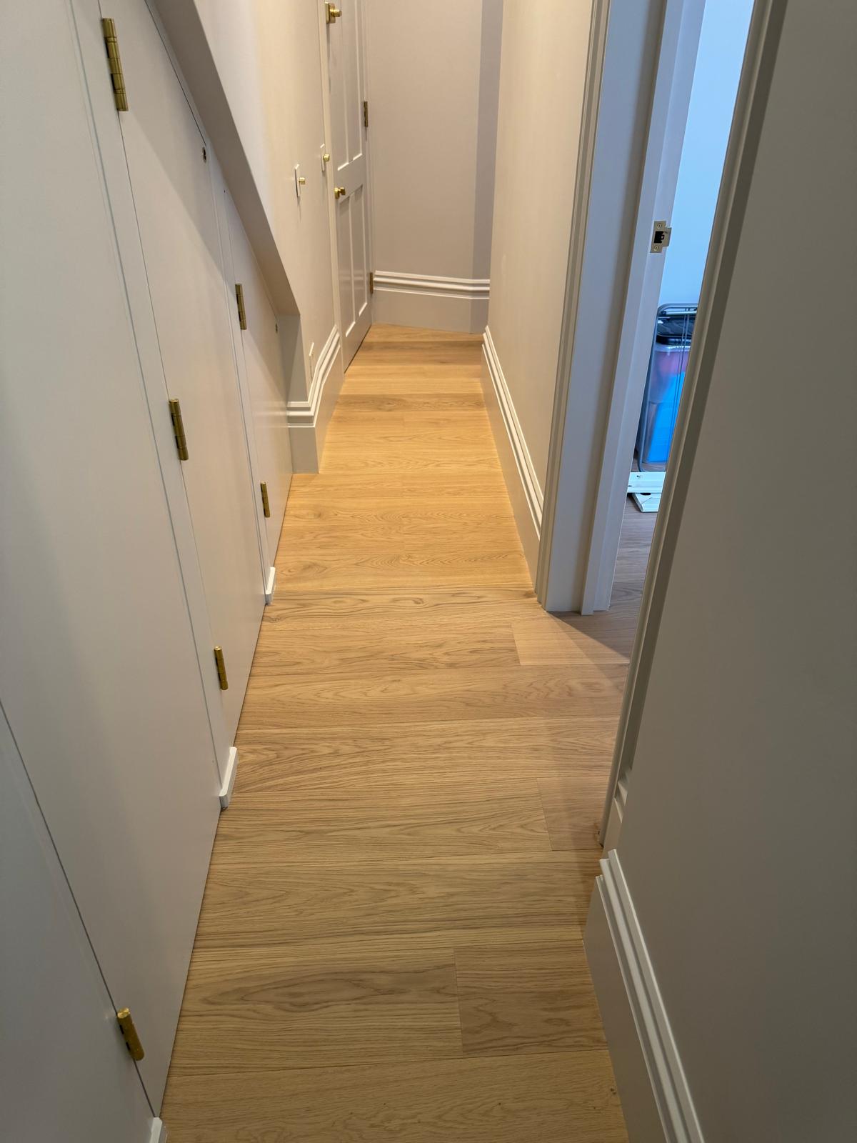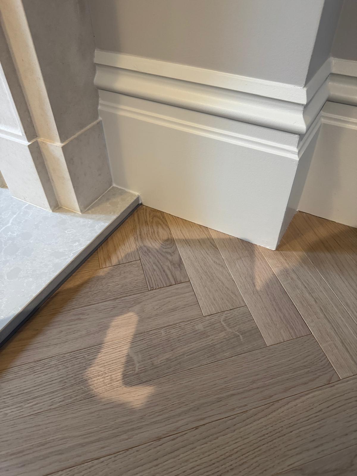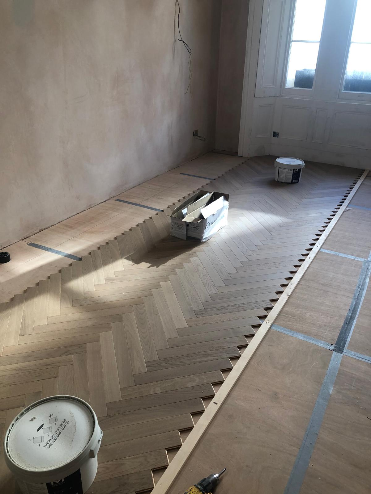 The floors in this flat had seen better days — uneven, creaky, and far from level. We stripped everything back, adjusted the subfloor, and added new plywood to make the structure solid again. Once the base was right, we installed beautiful parquet flooring throughout. The difference was immediate — the new floor completely changed the feel of the apartment, adding warmth and a sense of craftsmanship that ties the rooms together.
