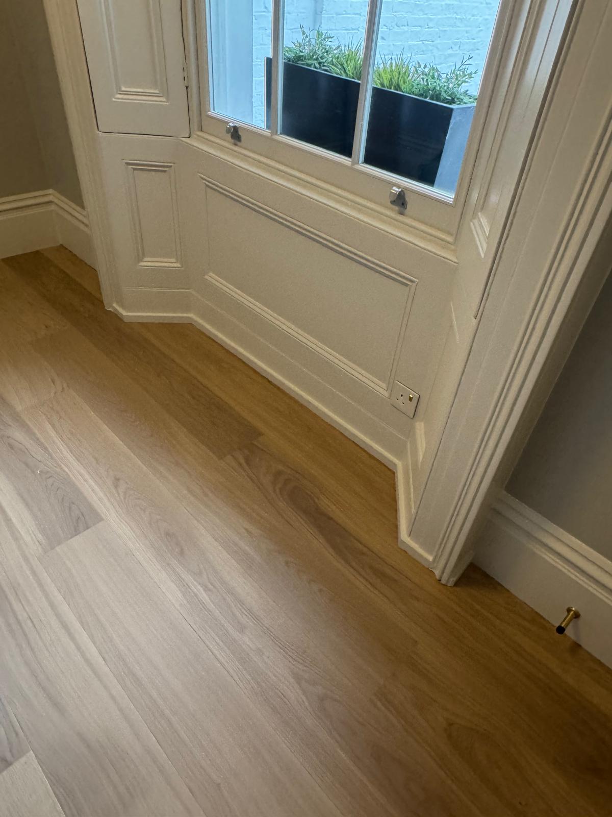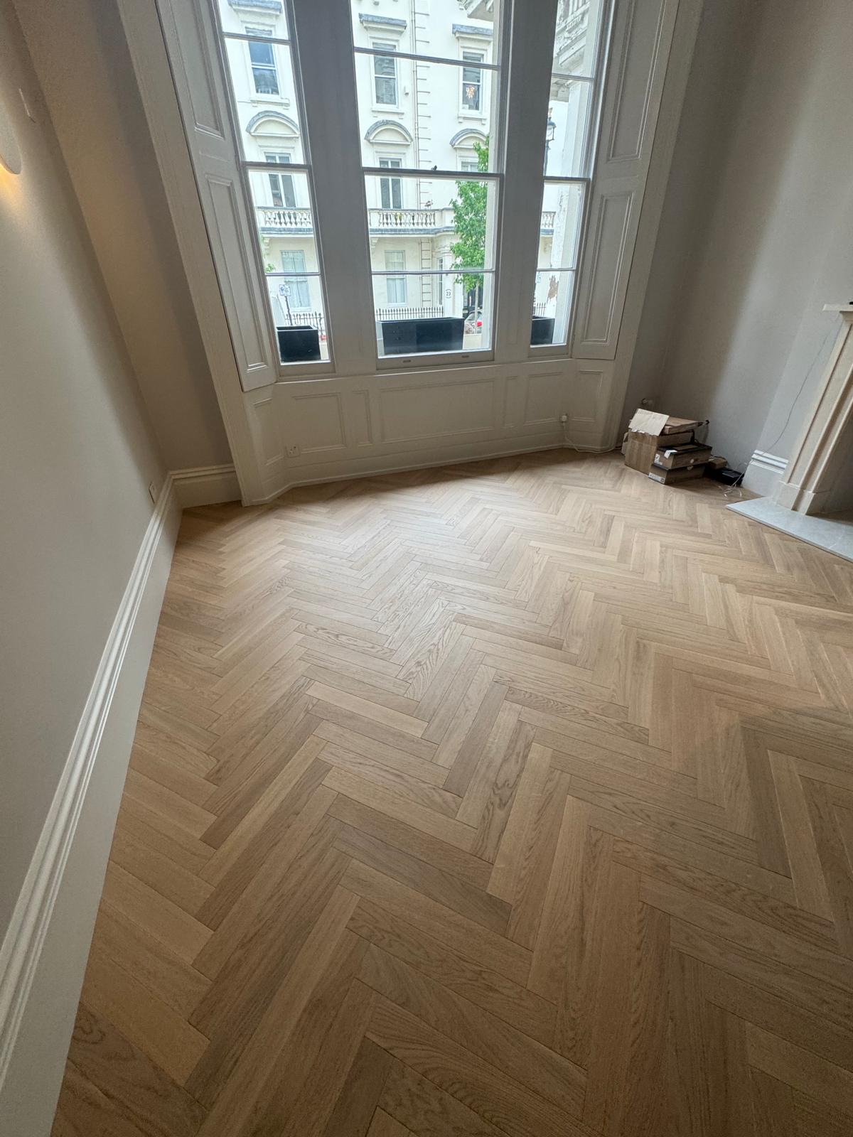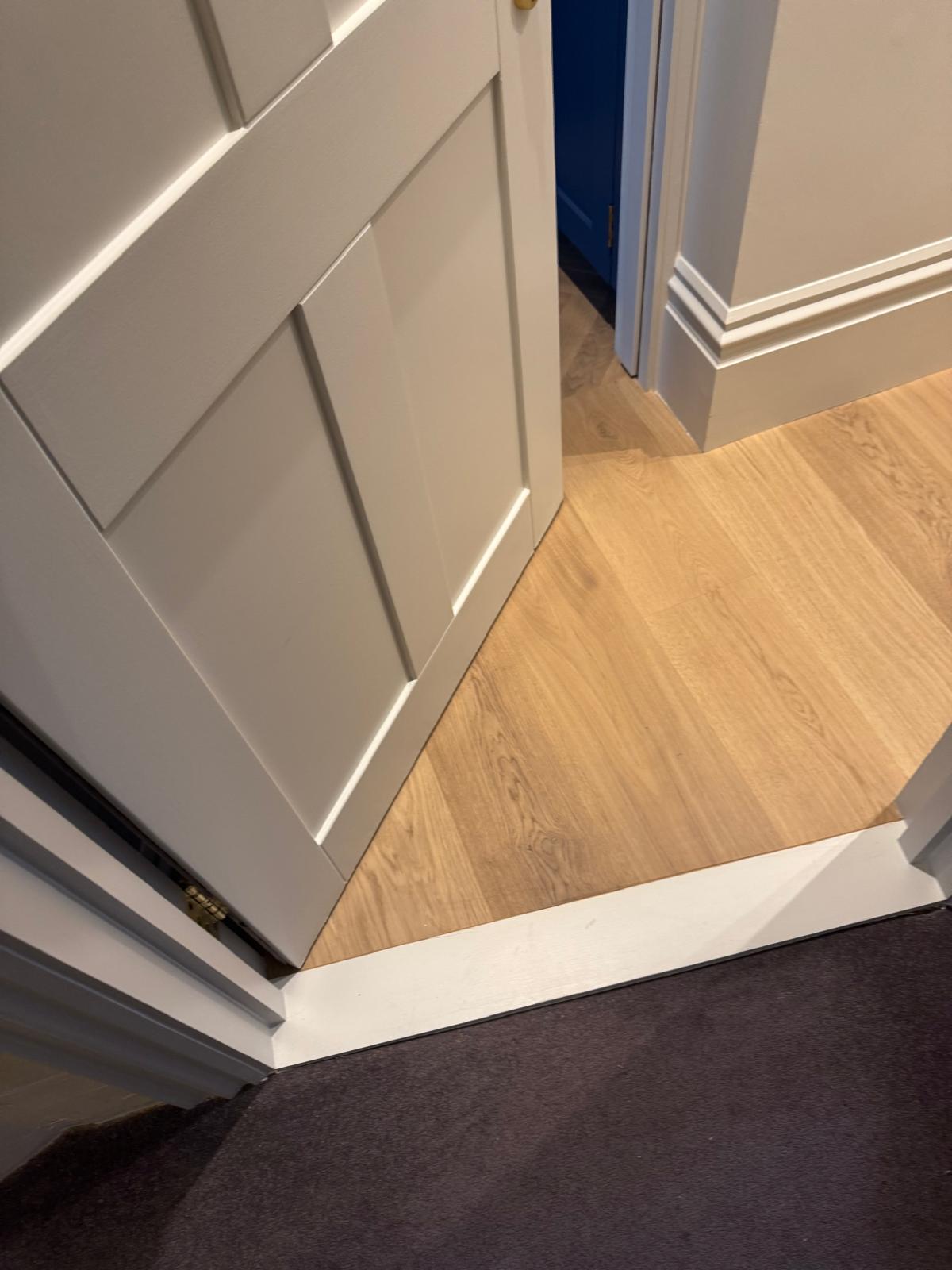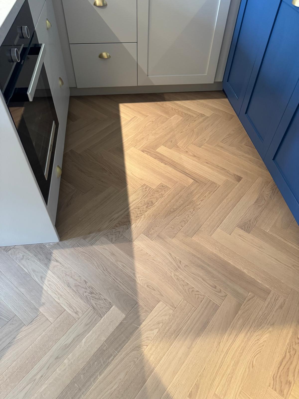 The floors in this flat had seen better days — uneven, creaky, and far from level. We stripped everything back, adjusted the subfloor, and added new plywood to make the structure solid again. Once the base was right, we installed beautiful parquet flooring throughout. The difference was immediate — the new floor completely changed the feel of the apartment, adding warmth and a sense of craftsmanship that ties the rooms together.