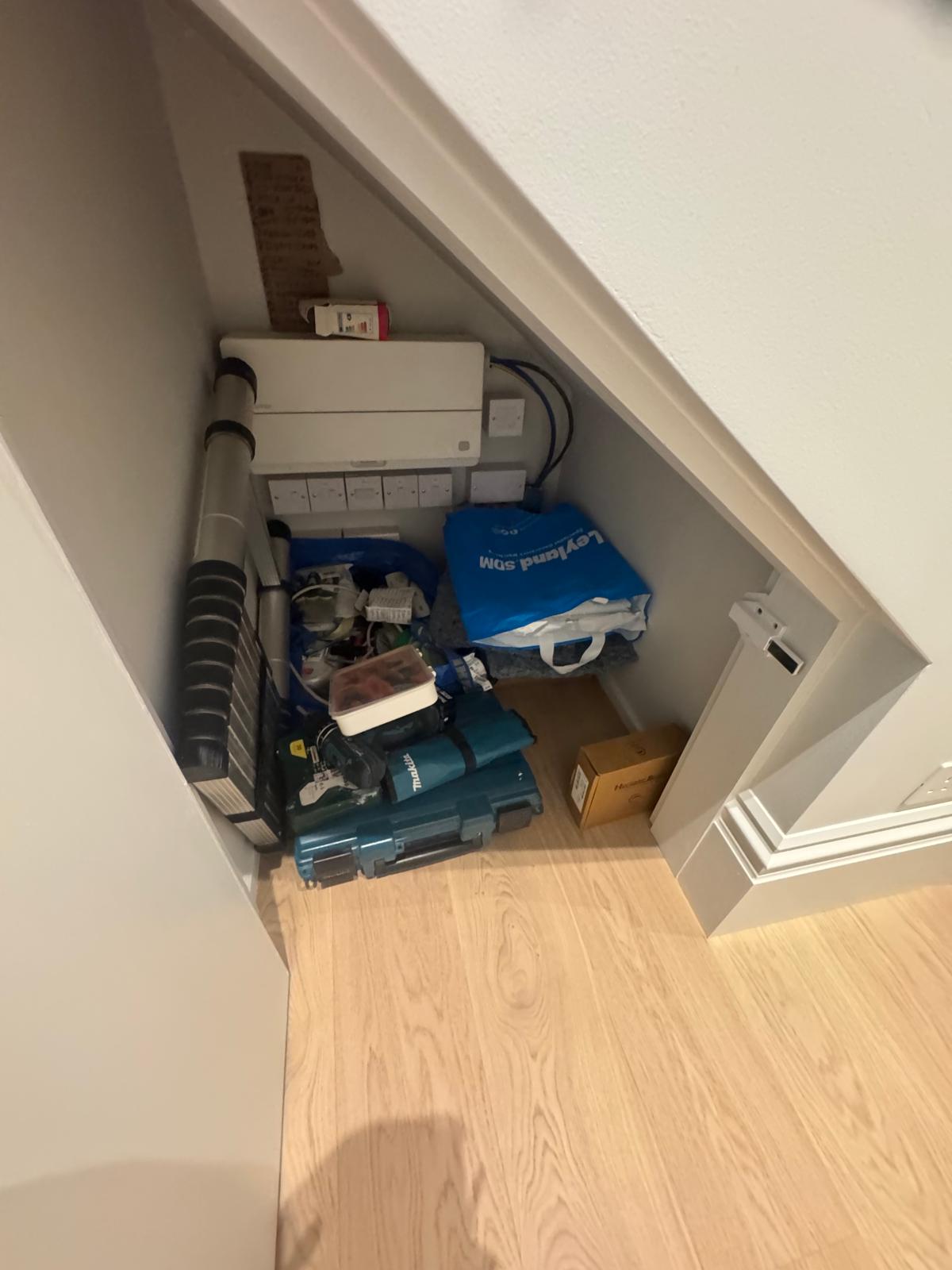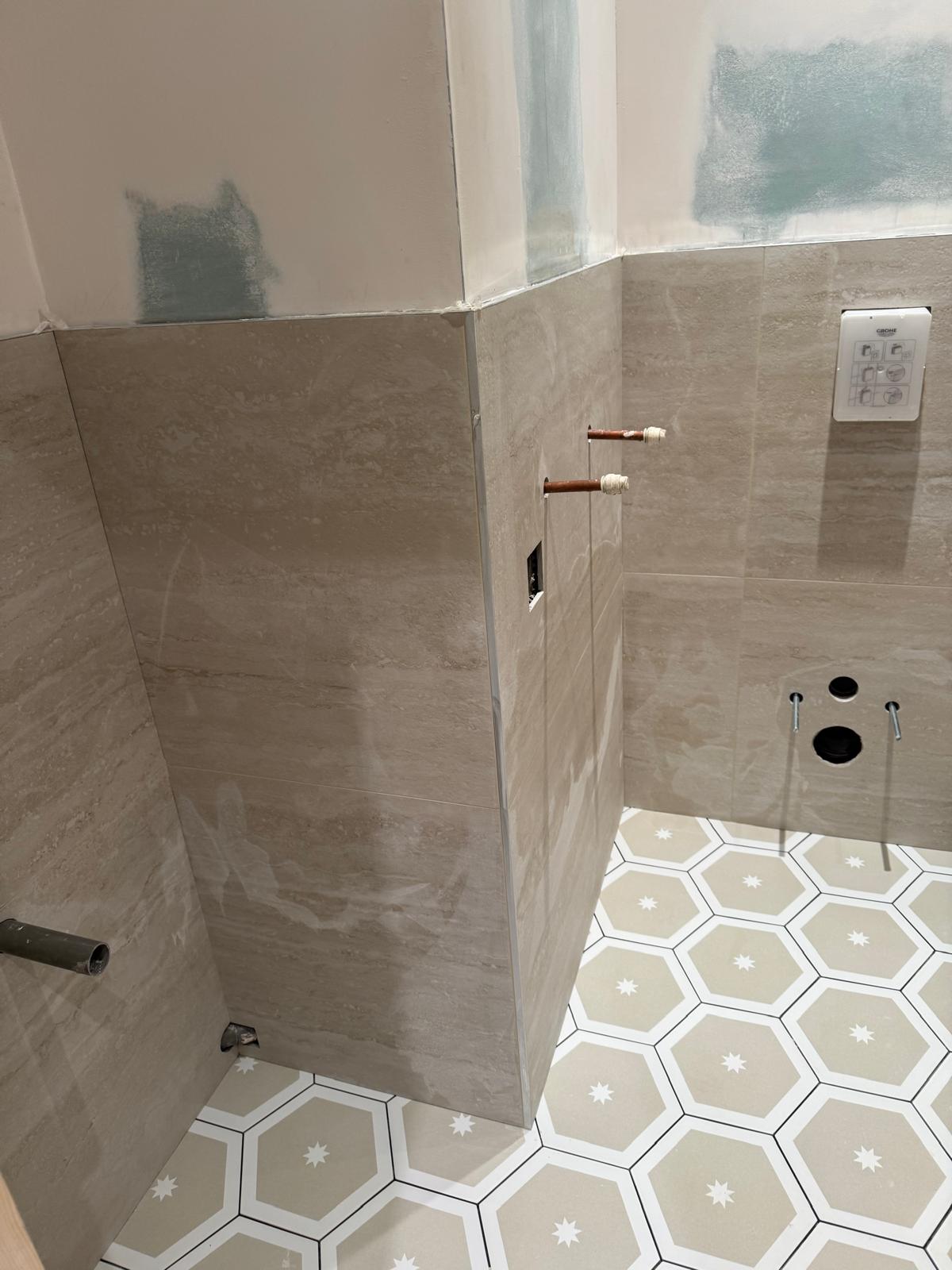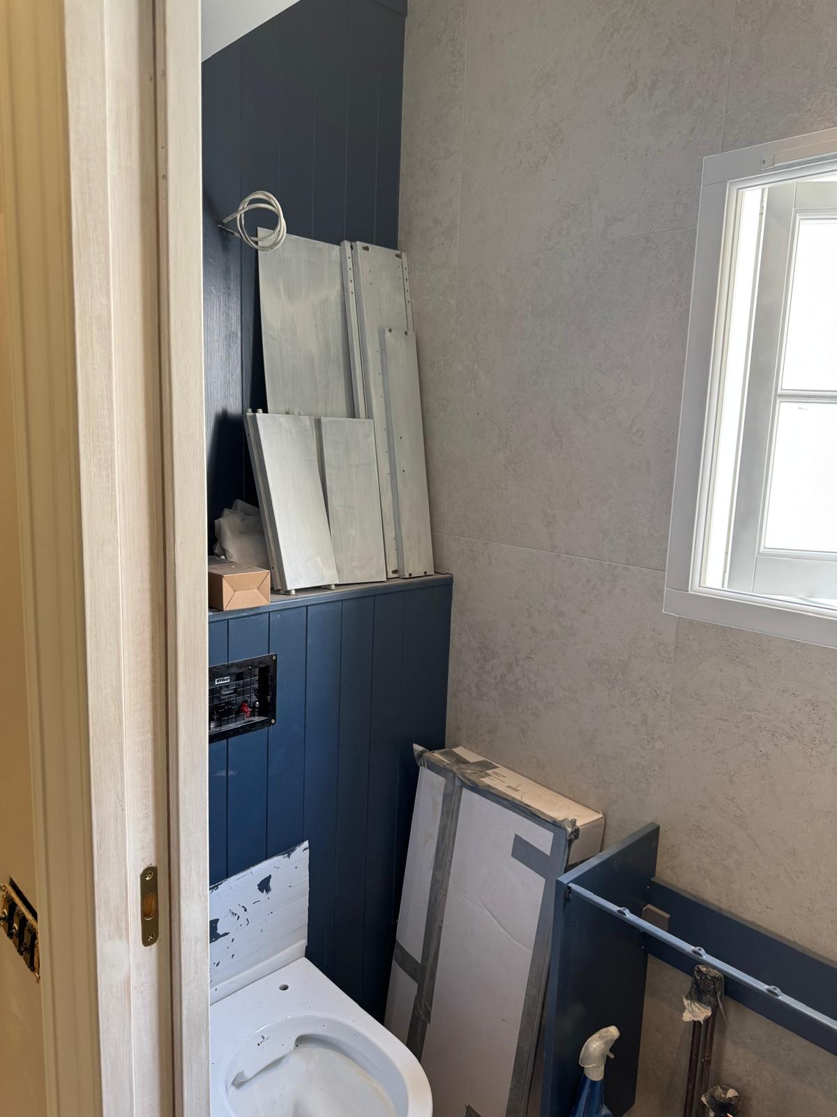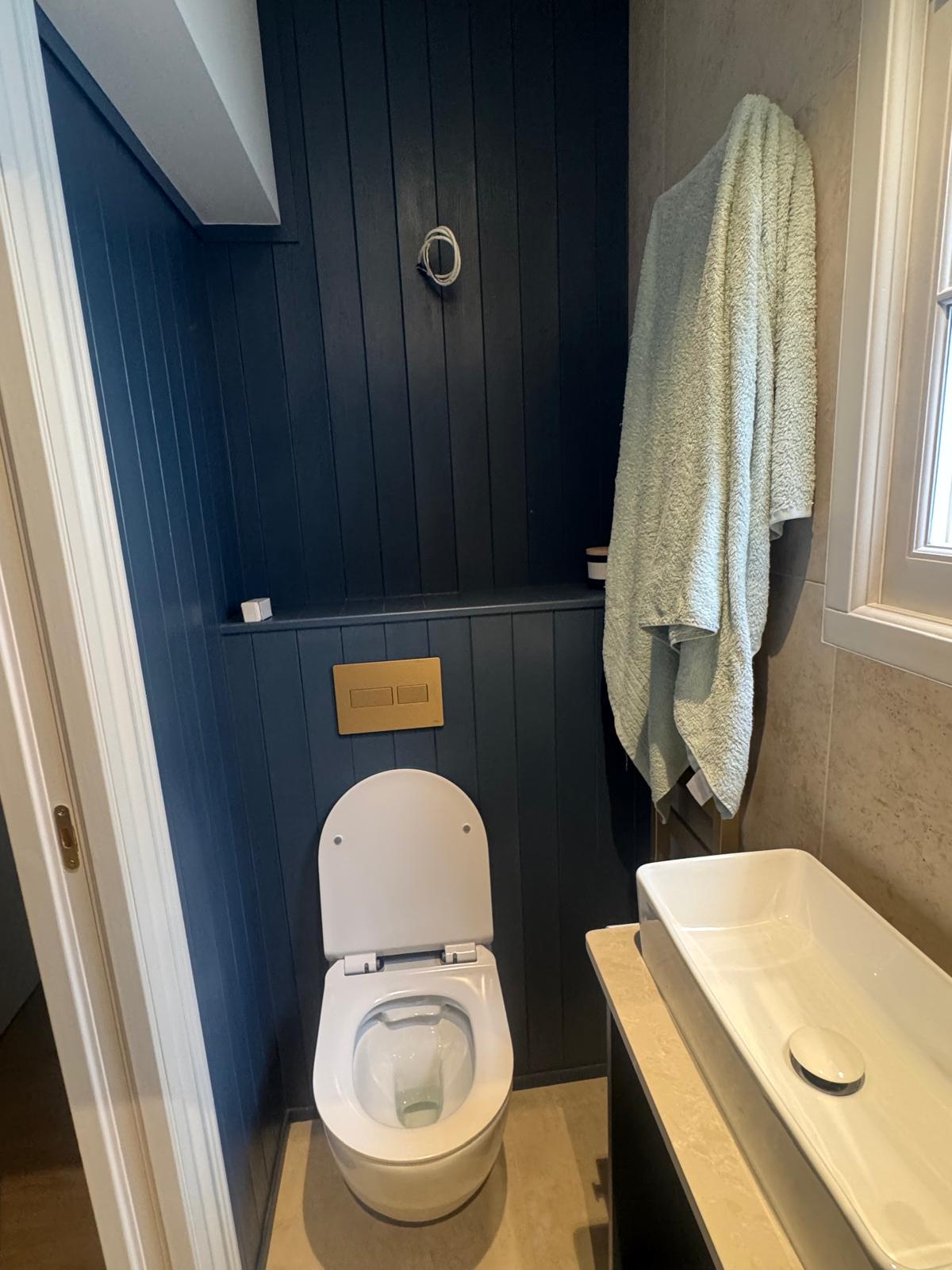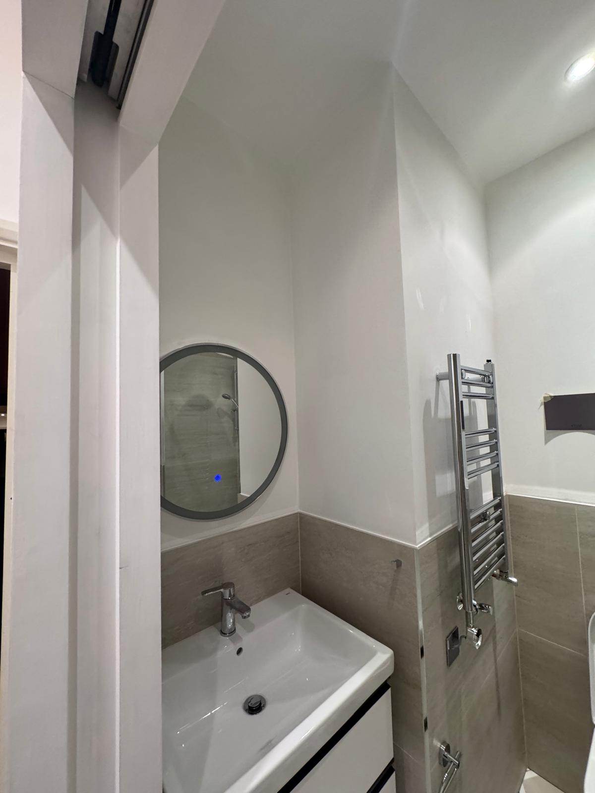The bathroom was rebuilt from scratch. We started with new plumbing, waterproofing, and the installation of a SaniFlo system to suit the layout of the flat. Then came the tiling — carefully chosen for both style and practicality. Every corner was finished by hand to ensure perfect alignment. What used to be a tired, cramped space is now a bright, modern shower room that feels fresh, comfortable, and built to last.