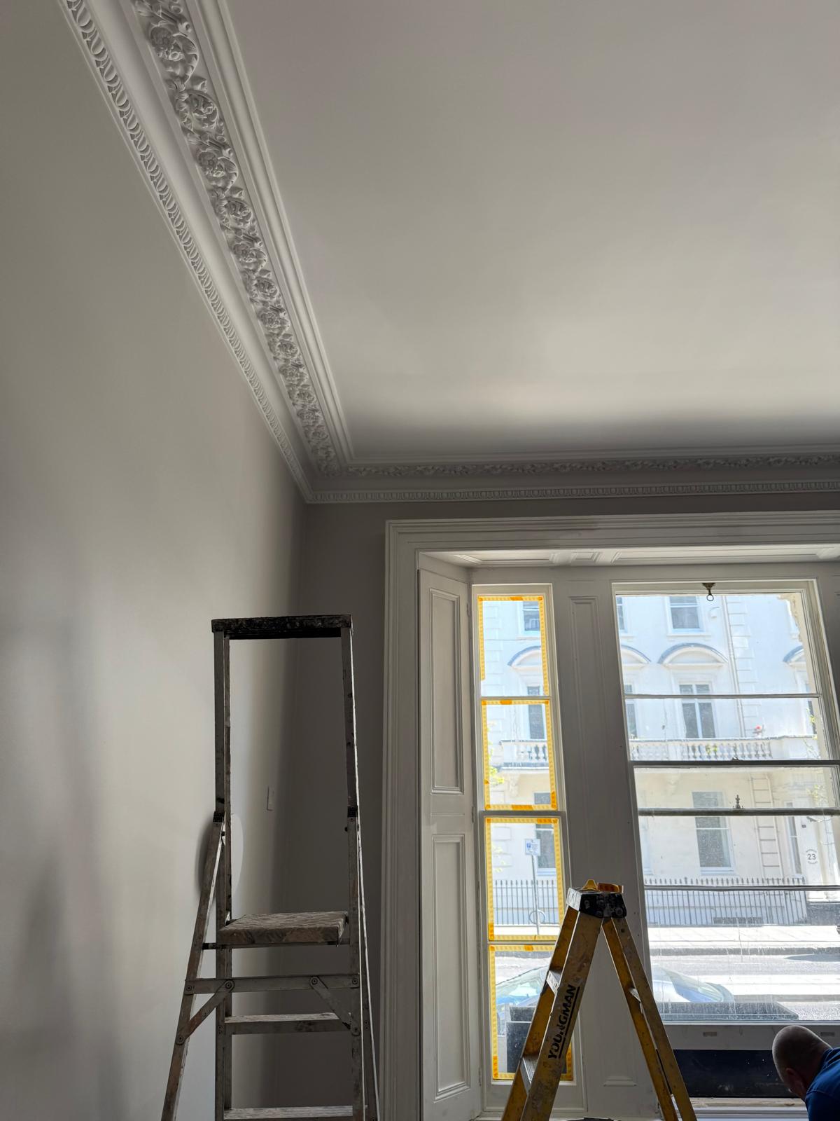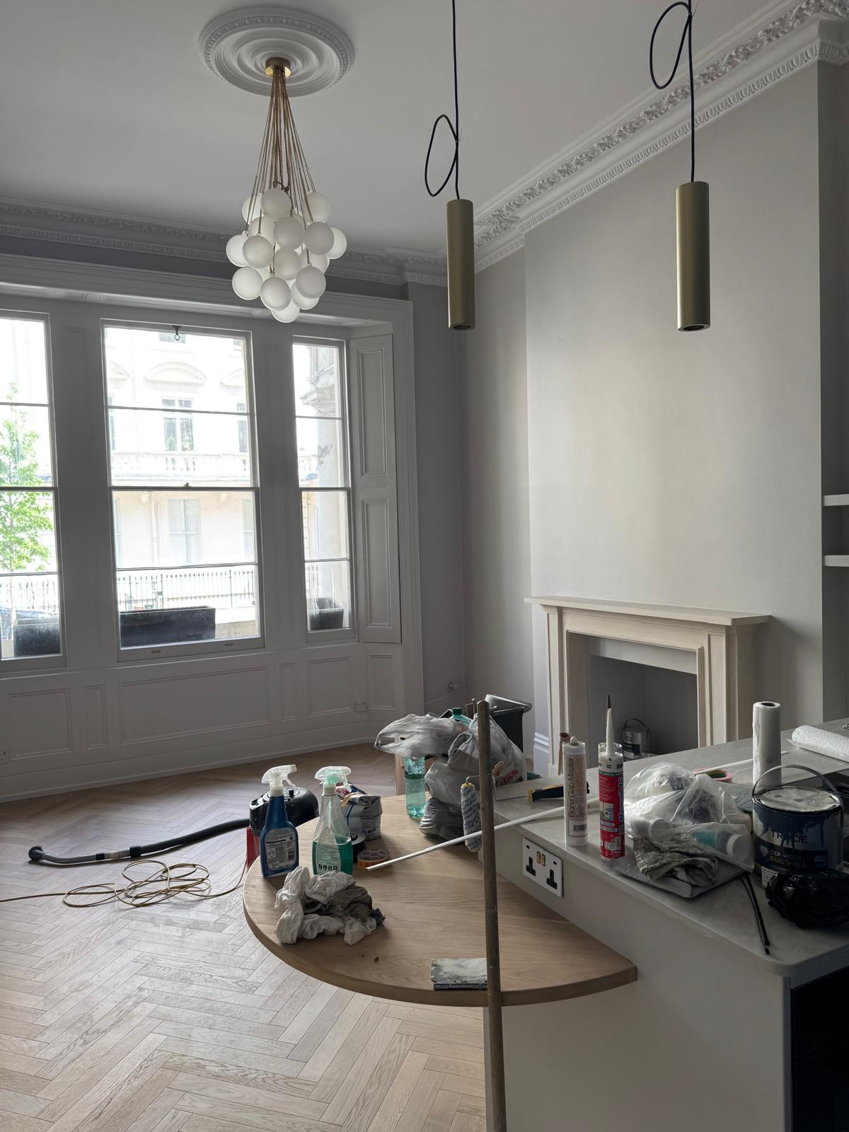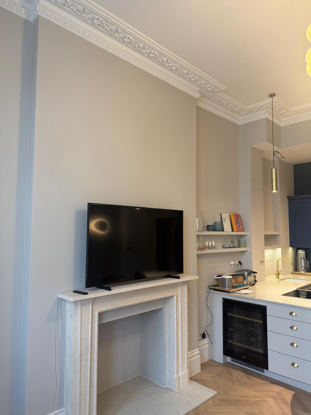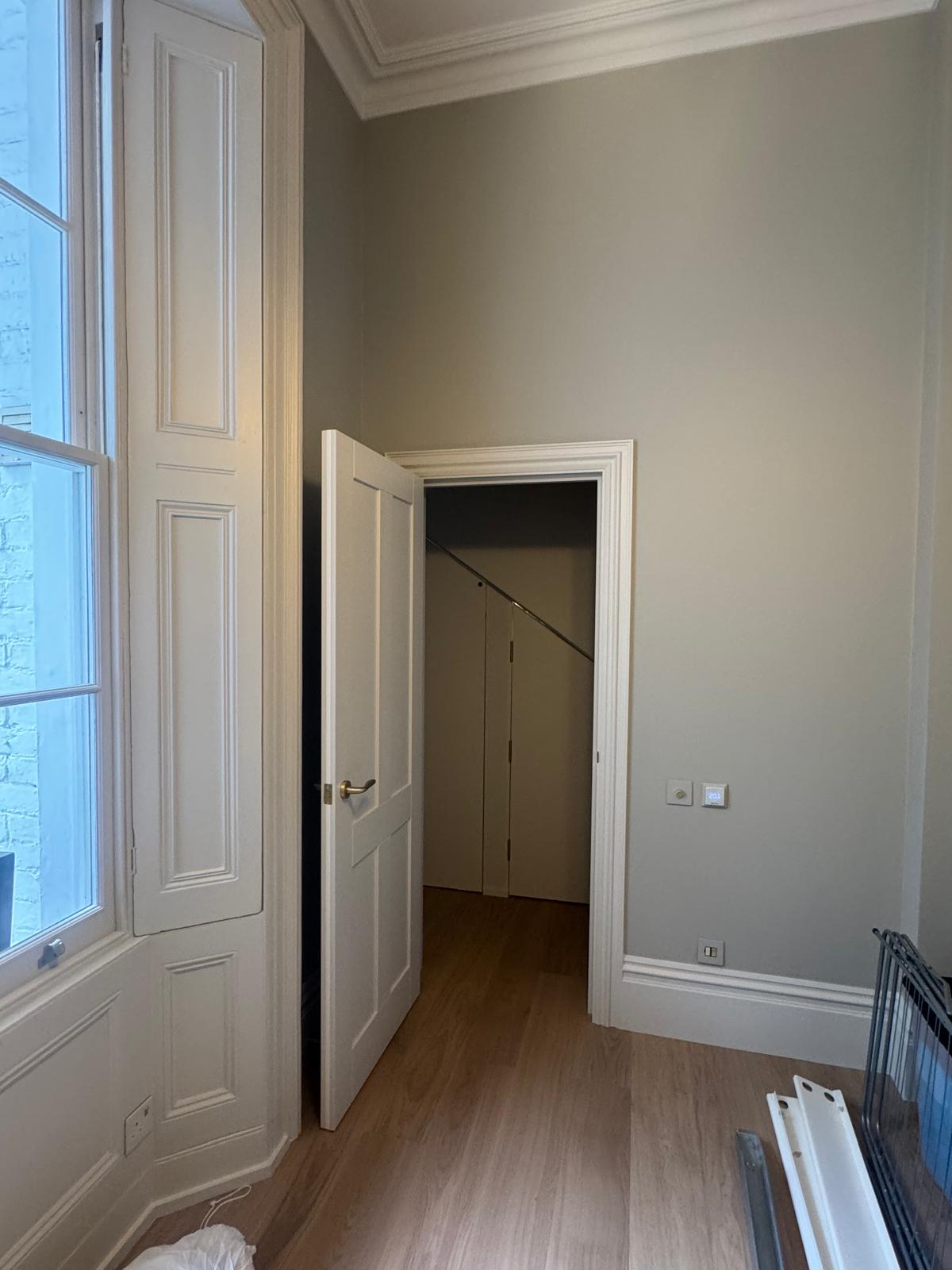 Once the main construction work was done, we focused on the details that make a home feel complete. We fitted new skirting boards, ceiling covings, and cornices to bring back some of the property’s original charm. Every wall and ceiling was repaired, primed, and painted with care. We finished off by fitting a new entrance door and adding those last touches that make the whole place feel brand new — but still unmistakably London in character.