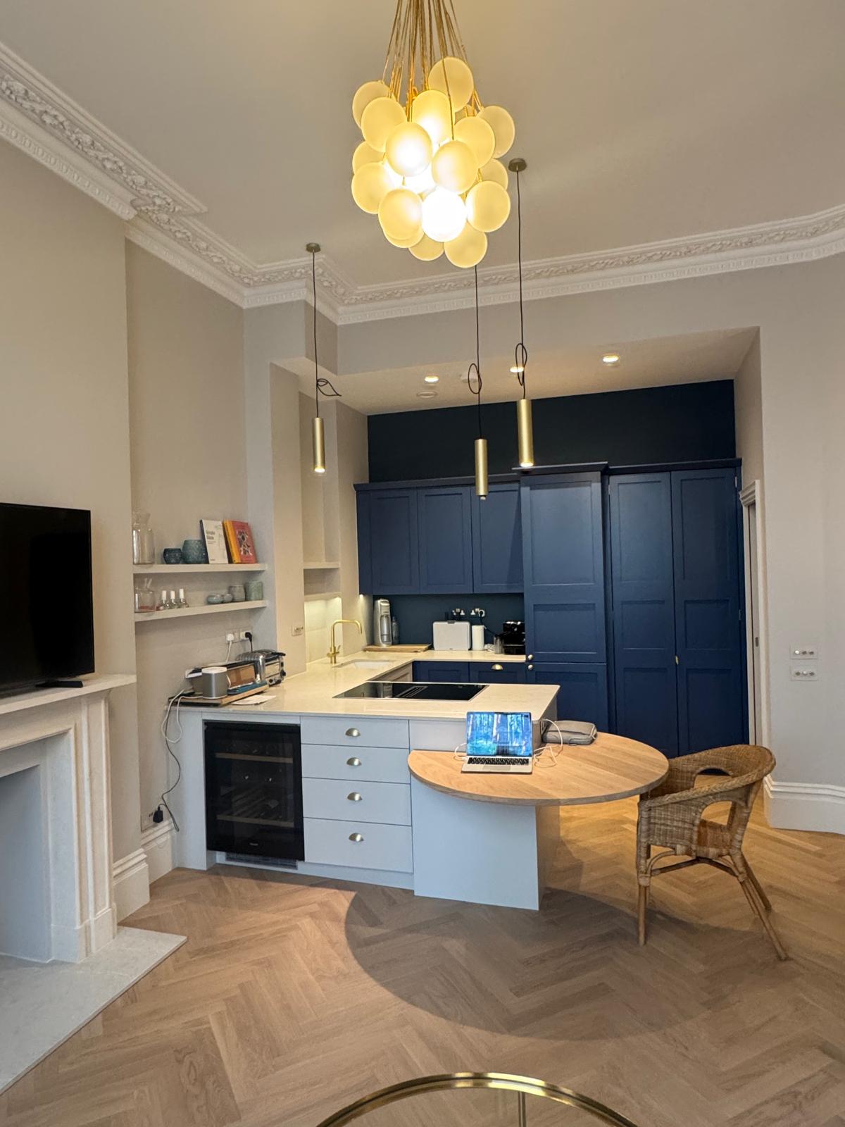 This refurbishment was far from simple — it involved careful coordination, technical precision, and a lot of creativity. But the result speaks for itself. What was once a cramped, low-ceilinged flat has become a spacious, elegant London apartment full of light and character.